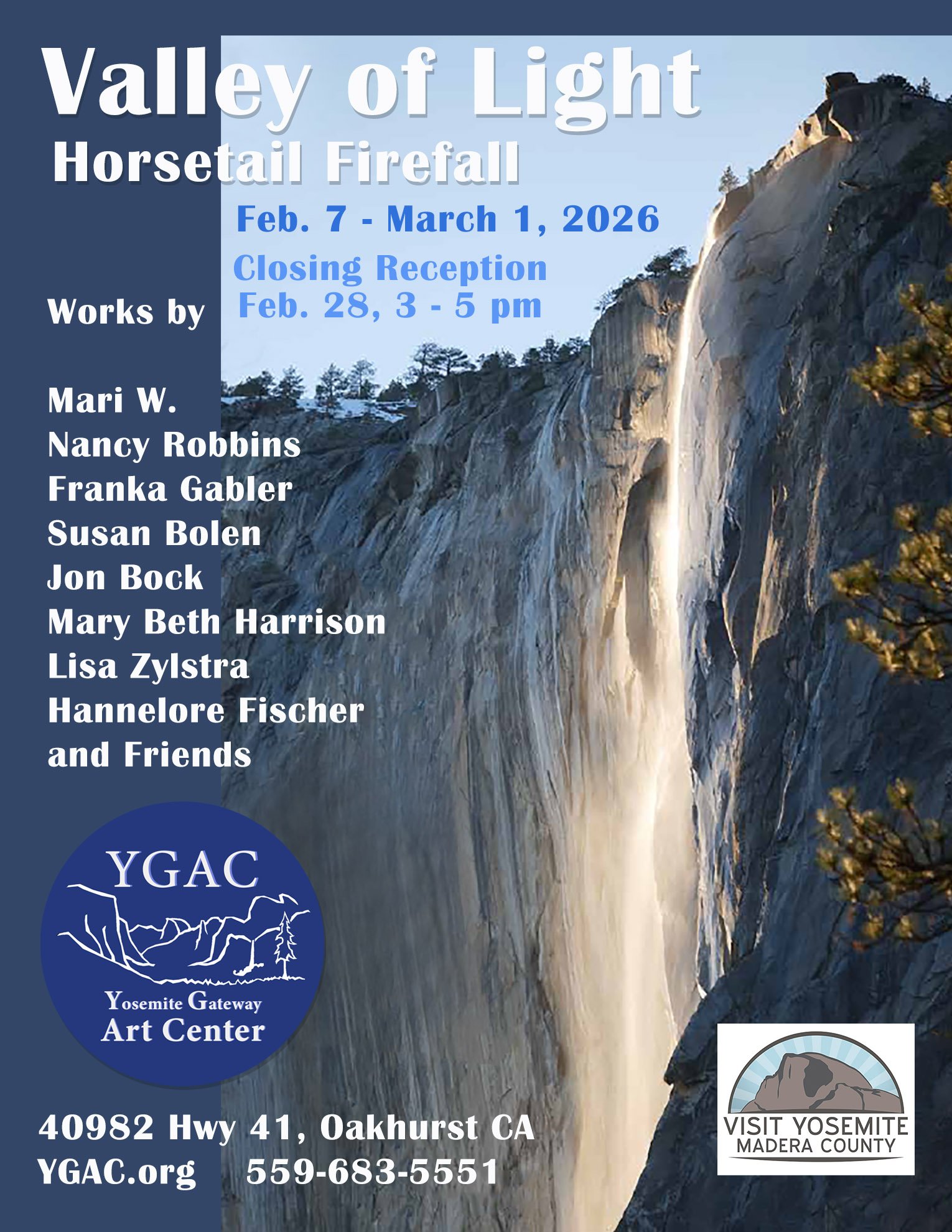 An art exhibit inspired by one of Yosemite National Park’s most anticipated natural phenomena will open in Oakhurst this February, offering visitors a chance to experience the beauty and complexity of the Horsetail Firefall through the eyes of regional artists.